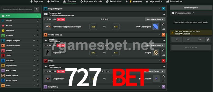 O 727 Bet oferece uma grande seleção de opções de apostas em e-sports com probabilidades competitivas